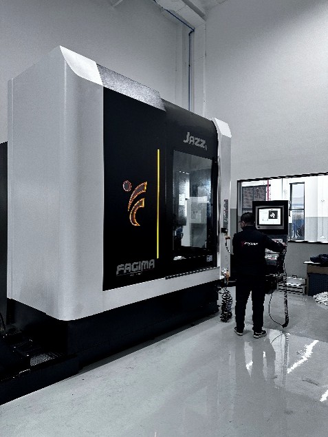 The JAZZ 5AX is a universal 5-axis machining center capable of meeting all high-dynamic and highly complex process machining requirements. It is available in three models: JAZZ R, JAZZ M, and JAZZ L. The base frame is made of DMP material specifically designed for milling machines, which is a composite material casting with damping vibration and high performance. (DMP: a new type of mineral casting, currently used in advanced machine tool production in Europe.) Two types of worktables are designed on the machine base, one is a fixed worktable, and the other is a cradle-type rotary worktable (C+B axis). The slide saddle carrying the column is mounted on the linear guide rails of the base, and the X and Y-axis movements are achieved by a transmission system composed of ball screws and guide rails. The spindle (optional with an electric spindle) is installed on the slide box bracket of the Z-axis and again uses a ball screw structure for movement. This model does not have a balancing cylinder, ensuring the dynamic performance of the machine at high speeds. A safety brake is installed at the upper end of the ball screw to ensure the safety performance of the Z-axis. The tool magazine is fixed on the side of the machine column. The working area of the machine is protected by a stainless steel inner guard.