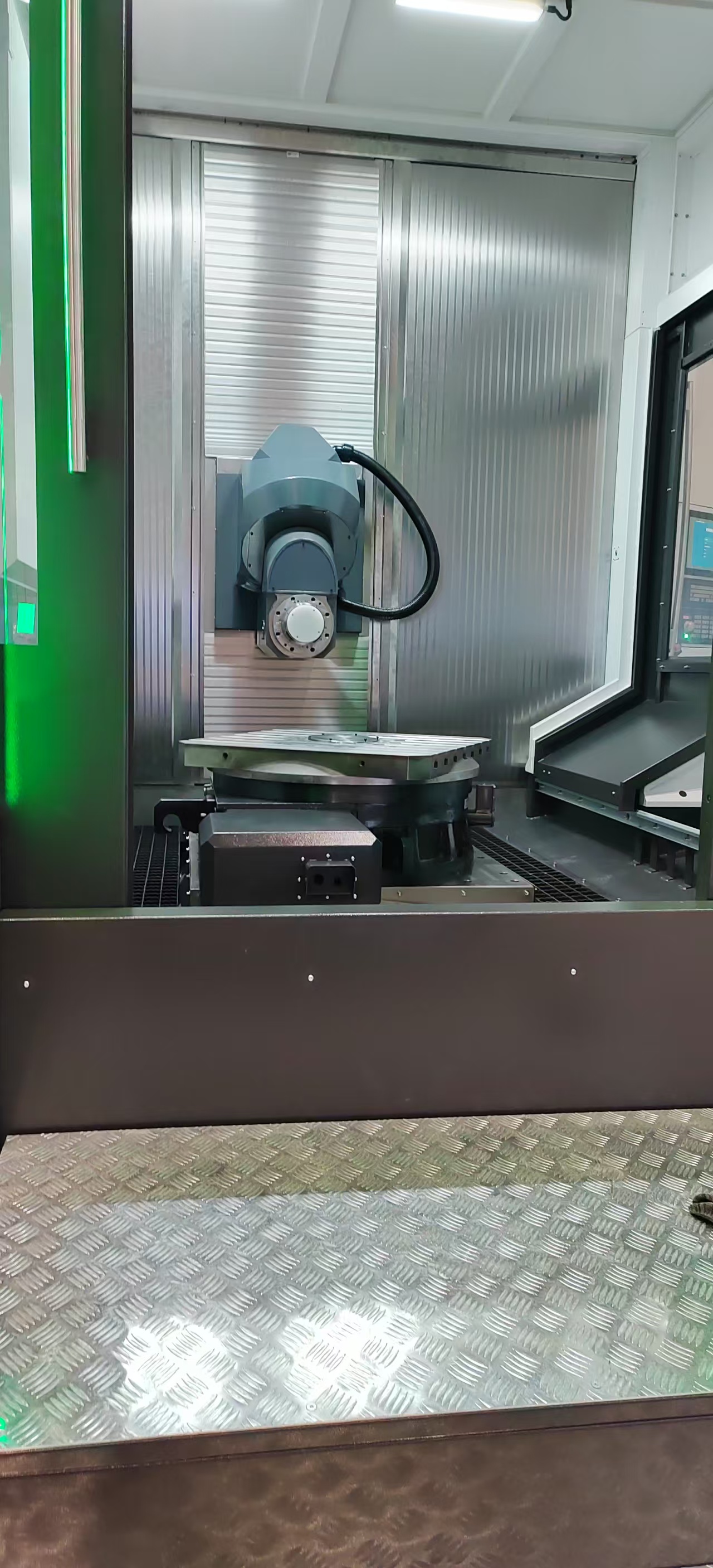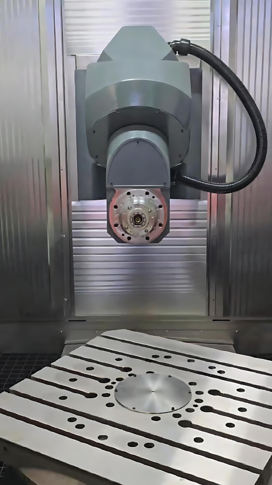 The CYBER series horizontal five-axis machining center adopts a combined design of a milling head and a rotating table, specifically developed for processing complex parts. It is a CNC machine tool with excellent performance and high cost-effectiveness. This equipment is equipped with an advanced CNC system and supports multiple operations such as multi-face milling, drilling, reaming, tapping, plane processing, tapping, turning, milling, and boring, which are particularly suitable for the production of high-precision and high-efficiency components. Its integrated processing feature can significantly reduce the use of special fixtures and marking processes, greatly improving production efficiency and reducing labor intensity. This series of machines is widely used in industries such as automotive manufacturing, motorcycle parts, aerospace, military equipment, precision instruments, electronic components, and mold processing, especially for processing complex parts with strict hole spacing requirements, such as small and medium-sized discs, plates, shells, valve bodies, and cams. Through program-controlled automation, the processing process is automated, effectively shortening the product production cycle. The equipment adopts a fully enclosed protective design, effectively preventing cutting fluid splashing and chip diffusion, while also having an elegant and stylish appearance. The core components use a complete set of main shaft systems from well-known Taiwanese brands, featuring excellent performance, strong tap force, and long service life. Users can select various functional modules according to their needs, including: exchange worktable system, main shaft oil cooling device, center water supply system, large-capacity tool magazine, and high-power main shaft motor and feed motor. The feed system of the machine adopts imported high-precision ball screws, supported by imported special bearings, and undergoes pre-tensioning processing. The motor is connected to the screw through a large-torque high-precision coupling to ensure that the transmission system has low inertia and high rigidity characteristics. The guide rail system uses Taiwan-made roller linear guides, combined with a centralized automatic lubrication device, achieving precise and timed lubrication, ensuring that the machine can maintain excellent dynamic response performance at both high-speed operation and low-speed feed, while extending the equipment's service life and maintaining long-term processing accuracy stability.