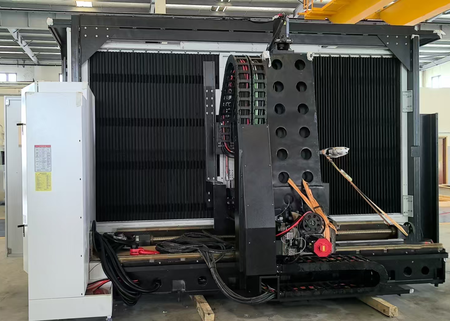 The FK series incorporates the rich experience accumulated over many years of production practice by HYPER. It adopts modern design concepts and advanced computing systems, and has precisely optimized every detail. Its core advantage lies in the high rigidity structure design. Through high-speed operation and high acceleration, it significantly shortens the working cycle while ensuring the Y-axis motion accuracy. The X-axis offers four travel specifications of 1600/2700/3200/4000 millimeters, combined with an 800-millimeter Y-axis travel, making this model highly competitive in the machine tool market. The main body of the machine tool is made of high-grade cast iron with an enhanced frame structure. The optimized layout of the reinforcing ribs through finite element analysis effectively disperses stress, and in combination with the pre-elimination of internal stress process, it ensures long-term processing accuracy and stability. The column and slide adopt a three-axis roller guide rail system. The high-rigidity column design not only ensures the stability of the spindle but also provides reliable support for the tool magazine system, and no complex foundation treatment is required.