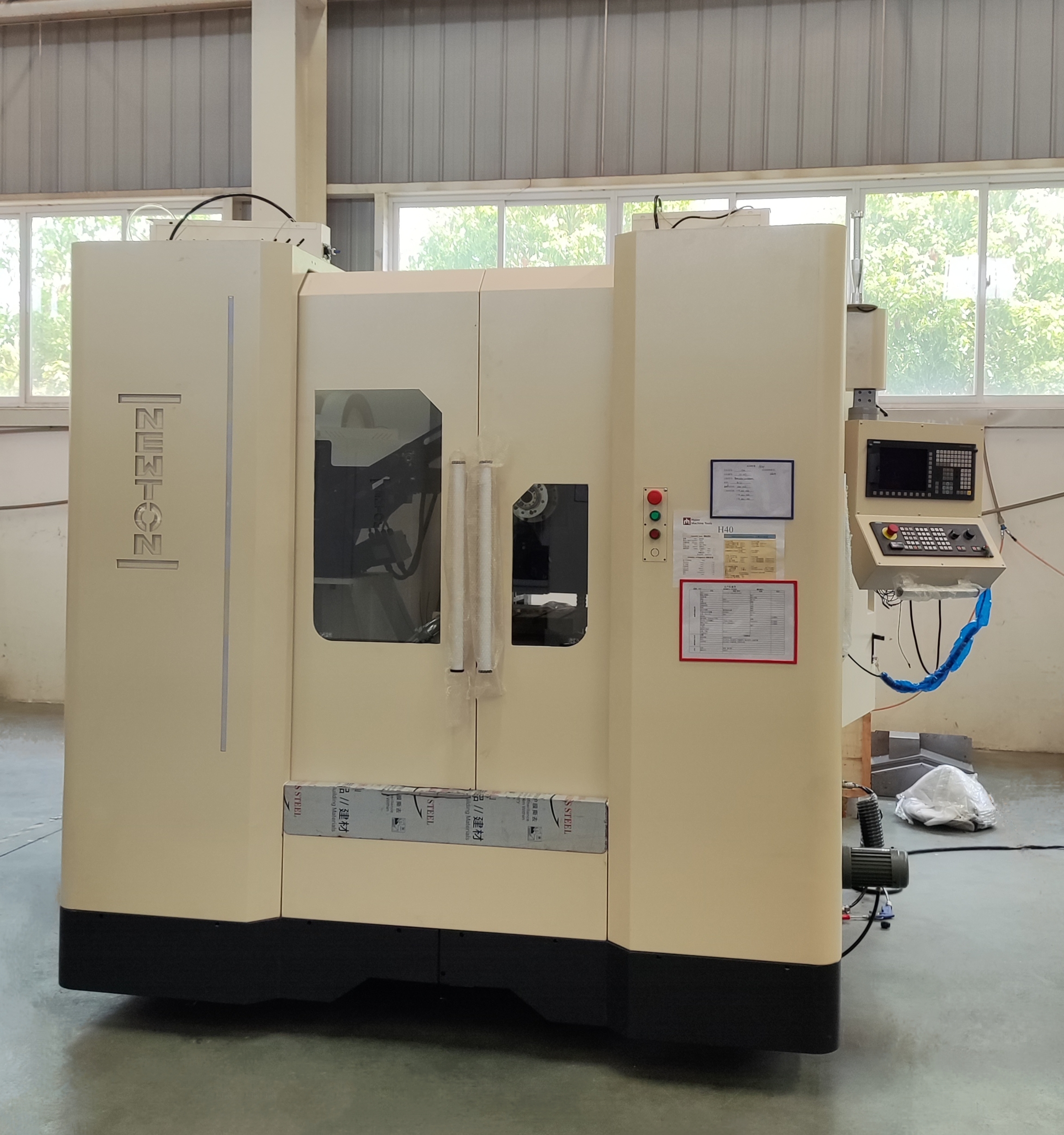 The H-series horizontal machining center is a cost-effective CNC machine tool, specially designed for complex machining of box-type parts and equipped with the Japanese FANUC CNC system. This machine tool can complete multi-surface machining in one clamping, including milling, drilling, reaming, counterboring, plane machining, tapping, and boring. It is particularly suitable for parts manufacturing that requires high machining accuracy and production efficiency. Its versatility can replace special fixtures and marking processes, significantly reducing workers' labor intensity. It is widely used in industries such as automobile, motorcycle, aerospace, military industry, instrumentation, electronics, and mold making. It is especially good at machining small and medium-sized disc parts, plate parts, housings, valve bodies, and cams that require high hole spacing accuracy. The programmed machining effectively shortens the production cycle. The H-series machine tool is equipped with a fully enclosed protective cover, which effectively prevents the splashing of cutting fluid and chips, and has a simple and elegant appearance design. It adopts a well-known Taiwan brand complete set of spindles with excellent performance, strong tool pulling force, and long durability. A variety of optional configurations are available: exchange worktable, spindle oil cooler, through-spindle coolant system, ZF spindle gearbox, large-capacity tool magazine, as well as high-power spindle motor and feed motor, to meet different processing needs. The core components of the machine tool (bed, column, saddle, worktable, and spindle box) are all made of high-quality high-shock-resistant gray cast iron, manufactured by ISO9000-certified enterprises using special casting processes to ensure material mechanical properties. After double aging treatment, internal residual stress is completely eliminated, enabling the machine tool to exhibit excellent rigidity, shock absorption, thermal stability, and long-term accuracy retention during heavy cutting and intermittent machining. The three-axis sliding guide design balances high-speed, high-precision, and heavy-cutting characteristics, and combined with an automatic forced lubrication system, significantly improves the machine tool's accuracy life and rigidity. The whole machine is optimally designed using 3D CAD software, and key components have their optimal structures determined through computer finite element analysis. The large-section bed, large-span guide rails, and A-type column design endow the machine tool with excellent strength, rigidity, and thermal stability, ensuring stable and reliable machining performance.